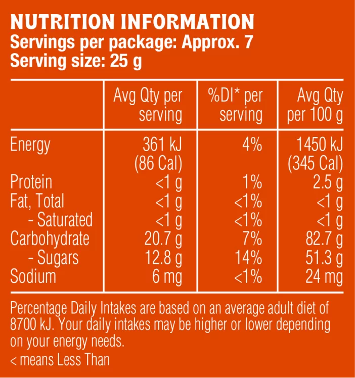 Sugar, Glucose Syrup (Wheat), Wheat Starch, Gelatine, Food Acids (297, 330, 334, 296), Flavours, Colours (163, Safflower Extract, 160c, 100).