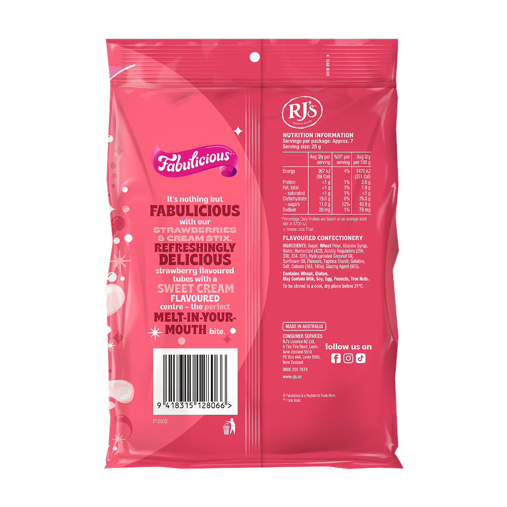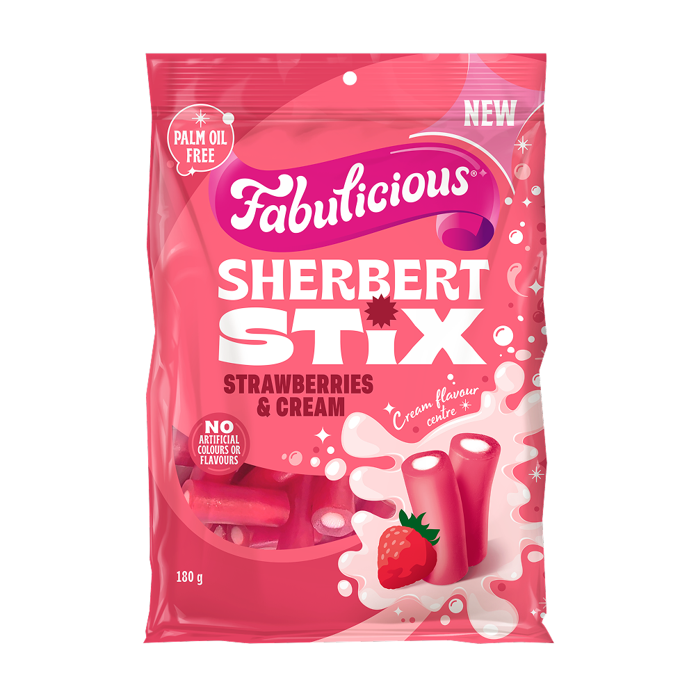 It’s nothing but Fabulicious with our Strawberries & Cream Stix. Refreshingly delicious strawberry flavoured tubes with a sweet cream flavoured centre – the perfect melt-in-your-mouth bite.