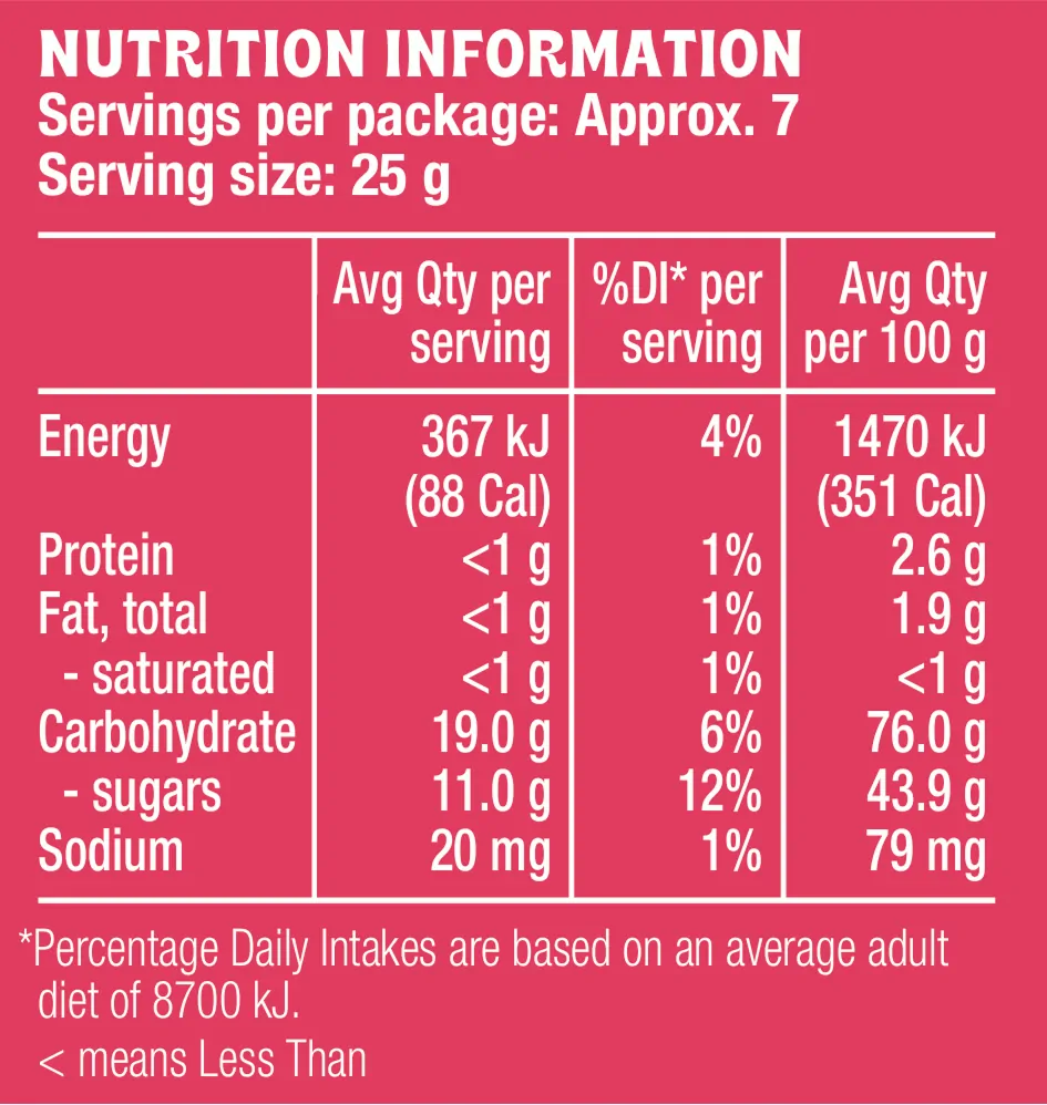 Sugar, Wheat Flour, Glucose Syrup, Water, Humectant (422), Acidity Regulators (296, 330, 334, 331), Hydrogenated Coconut Oil, Sunflower Oil, Flavours, Tapioca Starch, Gelatine, Salt, Colours (163, 160a), Glazing Agent (903).